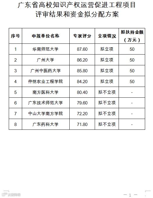 2.广东省高校知识产权运营促进工程项目评审结果和资金拟分配方案.doc
