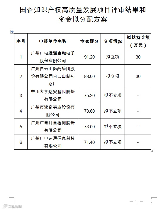 3.国企知识产权高质量发展项目评审结果和资金拟分配方案.doc