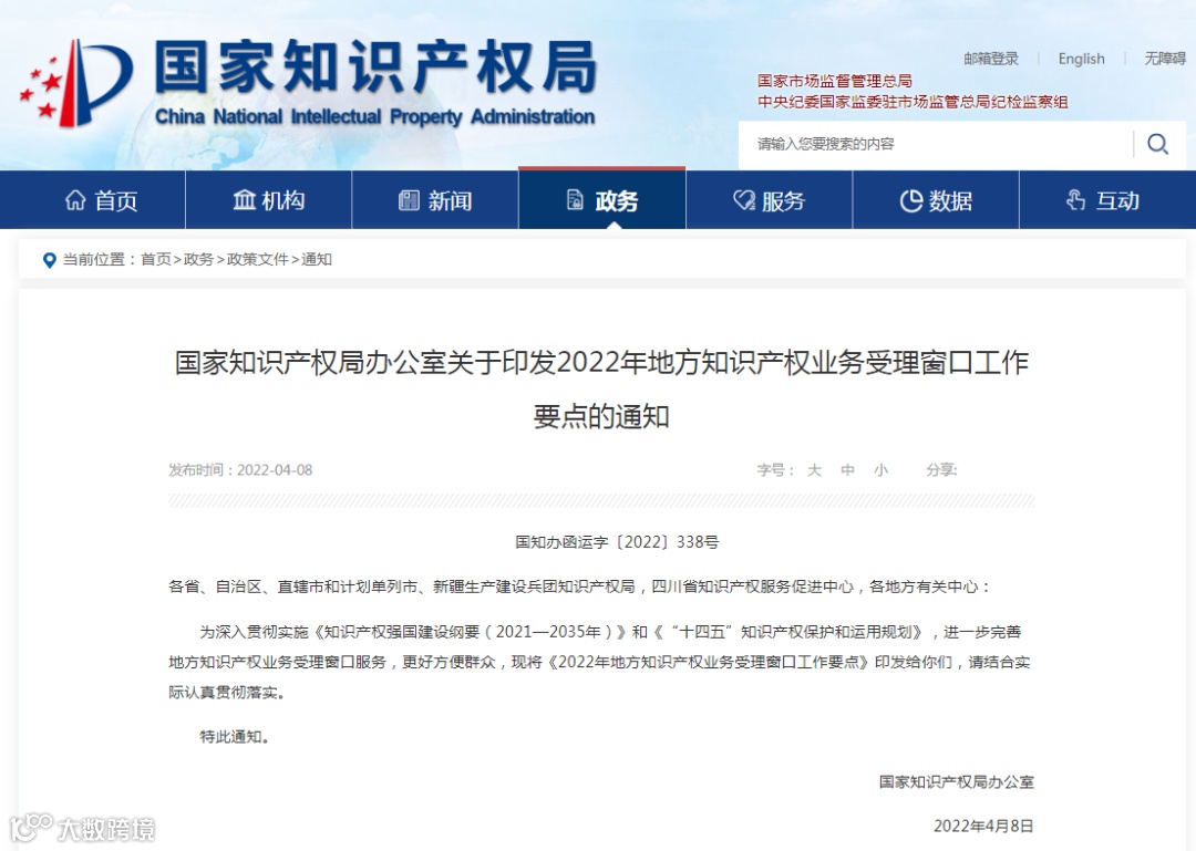 近年来,各地认真落实关于统筹推进地方知识产权业务受理窗口工作的部署要求,工作实效持续提升。目前,全国已有32个地方整合设立知识产权业务受理窗口,基本实现省级综合窗口全覆盖,累计设立277个市县商标受理窗口,为窗口工作高质量发展奠定坚实基础。2022年,地方知识产权业务受理窗口要深入贯彻实施《知识产权强国建设纲要(2021—2035年)》和《“十四五”知识产权保护和运用规划》,进一步完善“一站式”服务,丰富服务职能,提升服务效能,在新的起点上推动业务融合向纵深发展。