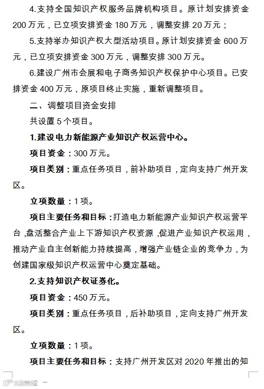 附件:广州市知识产权运营服务体系建设2019-2020年中央财政资金项目调整计划(征求意见稿).doc