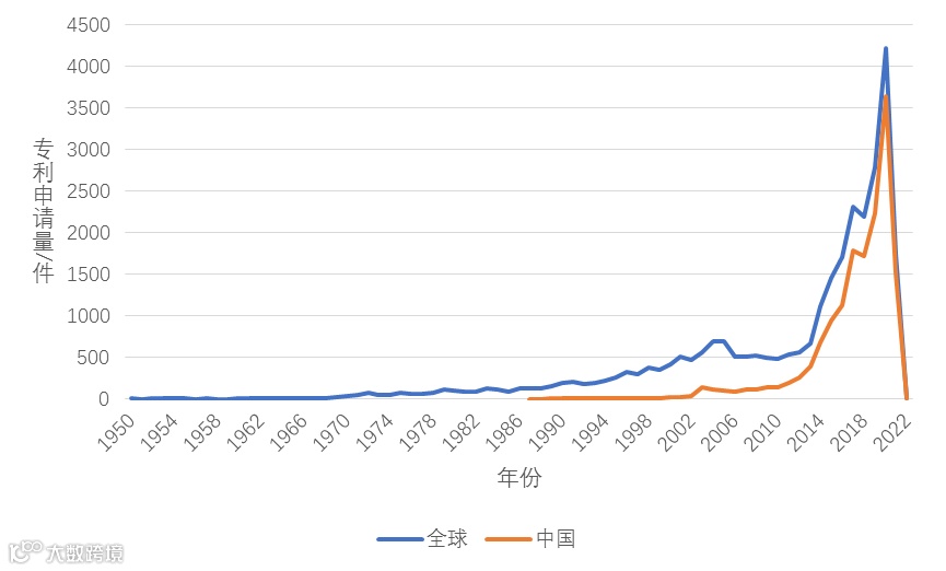图1 全球与中国空气净化器专利申请趋势