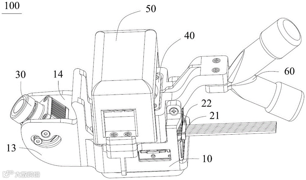 技术方案:本实用新型公开了一种图像传输装置,该图像传输装置包括设有容纳腔的基座、装配于所述容纳腔内的图传模块、以及装配于所述基座的相机模块和电池模块;其中,所述相机模块通信连接于所述图传模块,所述电池模块用于为所述图像传输装置供电,所述图像传输装置包括用于与外部电源电连接的电源接口,以通过所述外部电源为所述图像传输装置供电。本实用新型的图像传输装置脱离原有的依附移动设备,且不需要接入任何系统,可以不受外部环境约束进行独立供电工作,可以应用到任意需要FPV需求的场景当中。