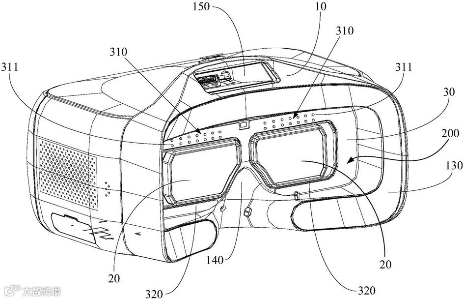 技术方案:本实用新型涉及显示设备技术领域,特别涉及一种头戴式显示设备。包括眼镜主体(10)、镜片(20)、光学部件(200)以及散热风扇(40)。光学部件(200)设置于眼镜主体(10)的收容空间内,将收容空间分隔形成第一收容腔(110)和第二收容腔(120)。光学部件(200)上设有导风部(310),散热风扇(40)设置于第一收容腔(110)内,并与导风部(310)的位置对应设置。佩戴者使用时面部与第二收容腔共同形成一个相对密闭的空间,当佩戴者出汗后会导致密闭的空间内空气中的湿度增加,通过散热风扇和开设于光学部件上的导风部配合抽风,使密闭的空间内的空气形成对流起到散热的作用,以避免造成水汽附着到镜片上,起到防止镜片起雾的效果。