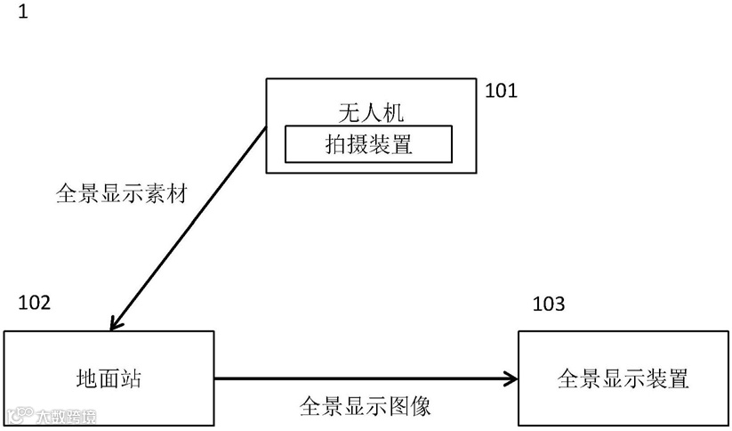 技术方案:本专利申请提供一种全景图像显示方法,用于显示由无人机拍摄的全景图像,包括如下步骤:将由无人机的拍摄装置拍摄到的全景显示素材传输给地面站(S11);所述地面站基于从所述拍摄装置接收到的所述全景显示素材进行全景图像处理,得到全景图像(S12);用于进行全景显示的全景显示装置接收并显示所述全景图像(S13)。