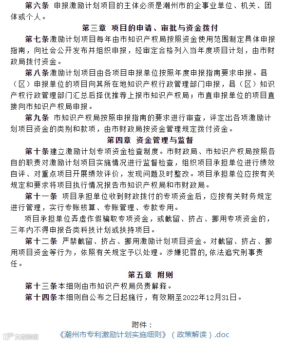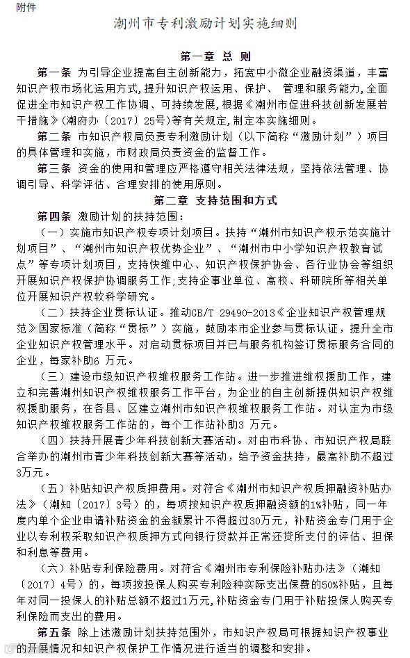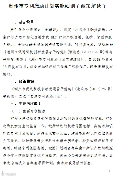 潮州市专利激励计划实施细则(政策解读)