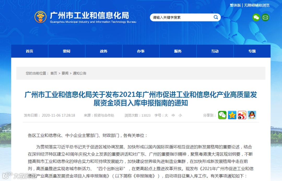 广州市工业和信息化局关于发布2021年广州市促进工业和信息化产业高质量发展资金项目入库申报指南的通知