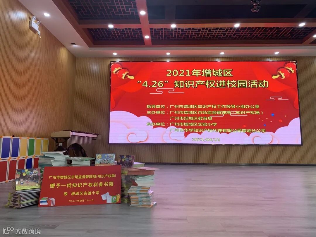活动当天,主办单位增城区市场监督管理局(知识产权局)准备了一批内容丰富的知识产权科普书籍赠予增城区实验小学。希望通过此次知识产权进校园活动切实增强师生的科技创新和知识产权保护意识,激励师生知识产权文化理念的树立,营造良好的社会氛围。