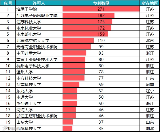 排名前20位的专利申请人中,有13家企业和7家科研院校,广州华多网络科技有限公司(下称华多网络)和展讯通信(上海)有限公司(下称展讯通信)以涉及许可的专利申请数量接近500件分别居榜首和榜眼,而江苏省属大专院校淮阴工学院位居第三。淮阴工学院近年的知识产权发展迅猛,据2021年相关报道显示,淮阴工学院曾位于中国高校专利转让榜第78位、全国专利许可排行榜第68位,2022年获批高校院所知识产权运营能力提升计划项目,并连续多年荣获“江苏省知识产权工作先进集体”、“江苏省技术转移工作创新奖”。