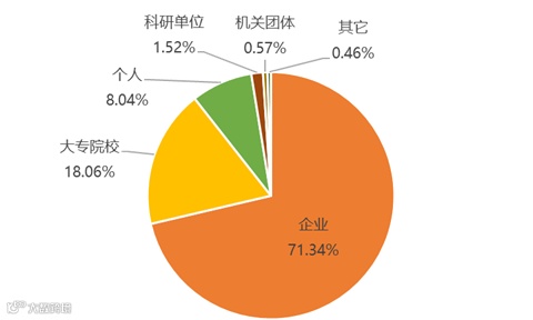 从专利申请人类型来看,2021年许可备案涉及的专利权人主要是企业,占71.34%,而大专院校18.06%,个人8.04%,科研单位1.52%,机关团体0.57%,其他0.46%。