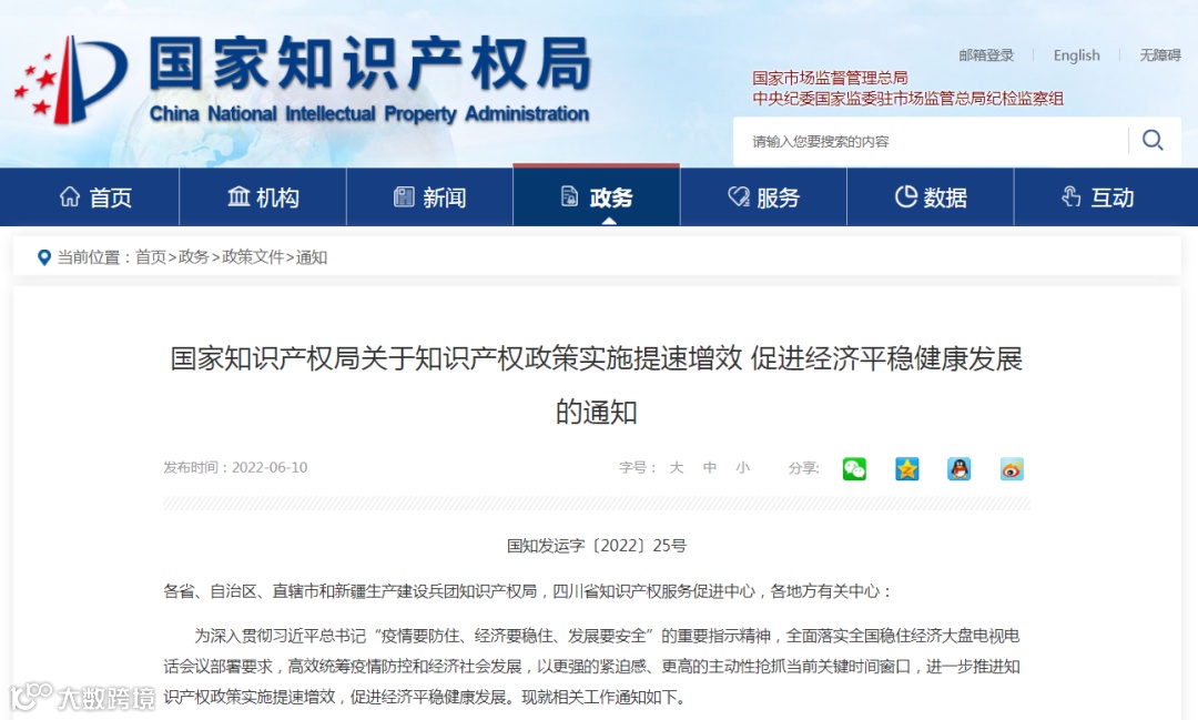 国家知识产权局将进一步加强统筹协调、政策供给和信息共享,及时协调解决突出问题,加大典型案例宣传力度,对措施得力、成效突出的省份,将在知识产权有关项目名额分配和遴选评审时予以倾斜,并在相关督查激励考核评审中予以加分。各地知识产权管理部门要紧抓知识产权强省强市启动建设的重要契机,更大力度争取地方党委政府支持,加大知识产权工作保障力度,力争知识产权惠企利民资金总盘子只增不减。在知识产权项目立项、遴选和资金拨付上,要加快节奏、优化流程、便捷办理,让政策更快惠及市场主体。要深入落实本通知要求,结合实际细化具体措施,扎实推动各项政策落地见效。2022年6月底前,与促进经济平稳健康发展密切相关的知识产权政策措施要应出尽出,相关政策措施出台后请抄送国家知识产权局知识产权运用促进司。