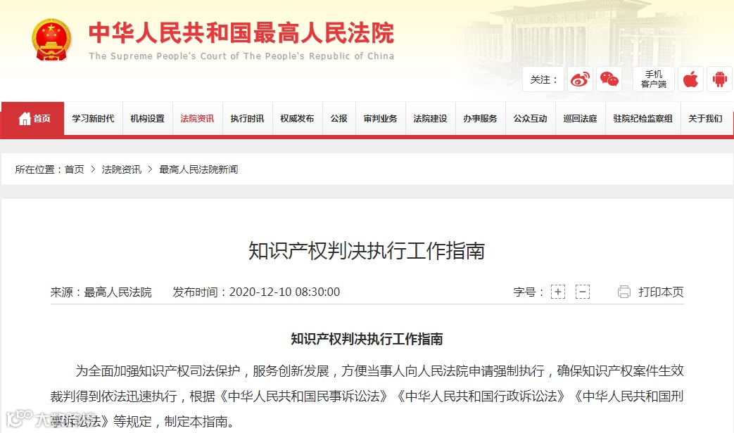 为全面加强知识产权司法保护,服务创新发展,方便当事人向人民法院申请强制执行,确保知识产权案件生效裁判得到依法迅速执行,根据《中华人民共和国民事诉讼法》《中华人民共和国行政诉讼法》《中华人民共和国刑事诉讼法》等规定,制定本指南。