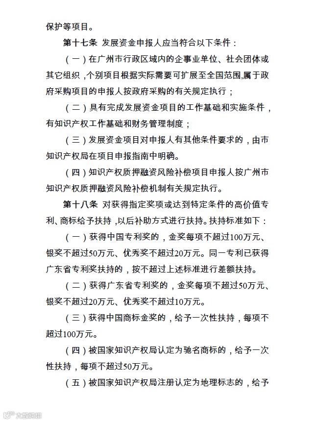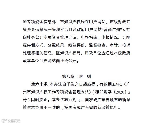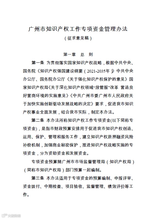 附件:广州市知识产权工作专项资金管理办法(征求意见稿)