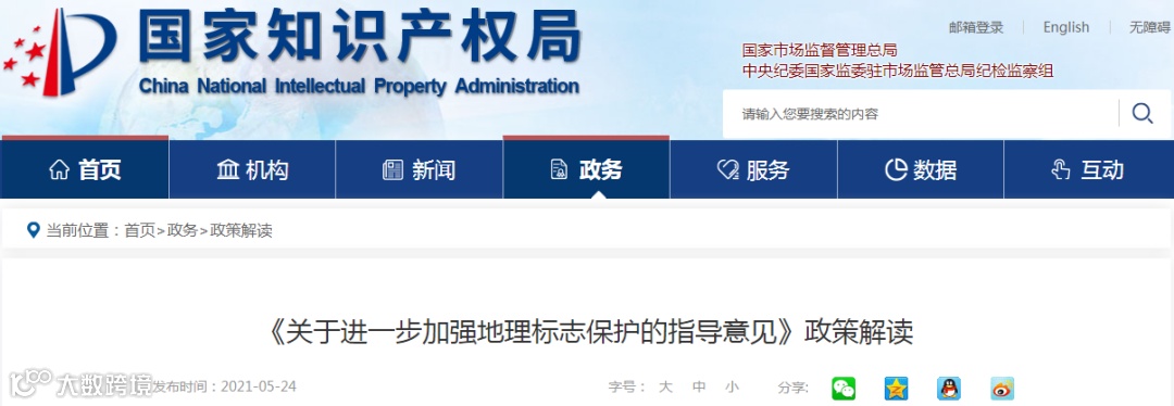 近日,国家知识产权局、国家市场监督管理总局联合印发了《关于进一步加强地理标志保护的指导意见》(国知发保字〔2021〕11号,以下简称《指导意见》)。现对有关文件要点解读如下。