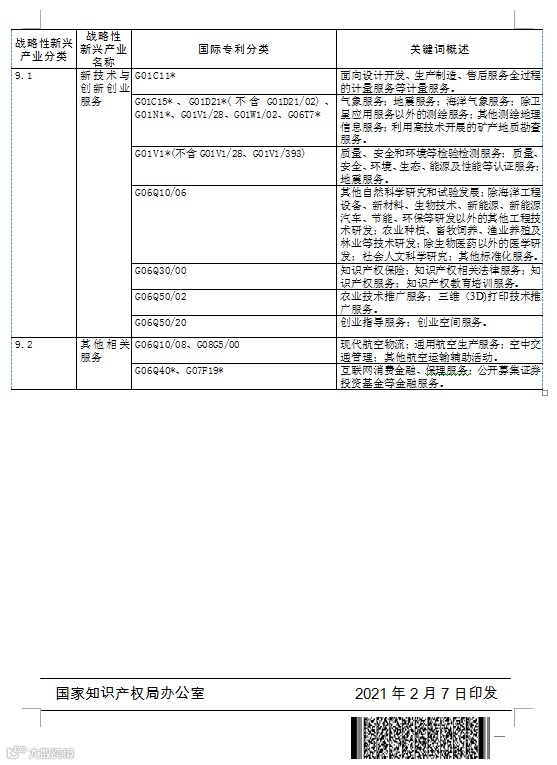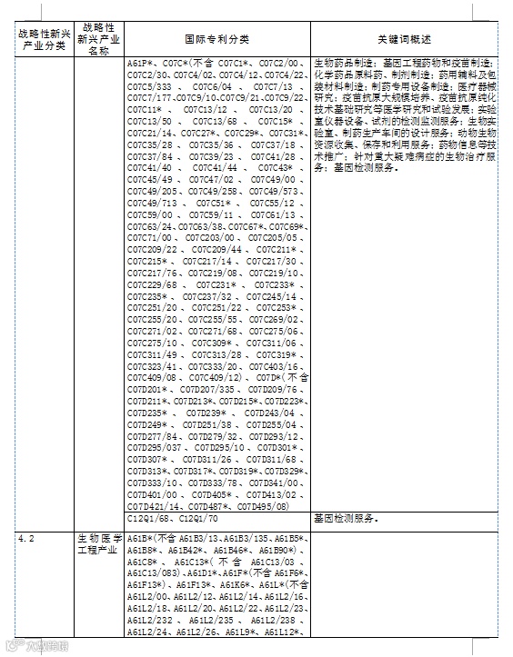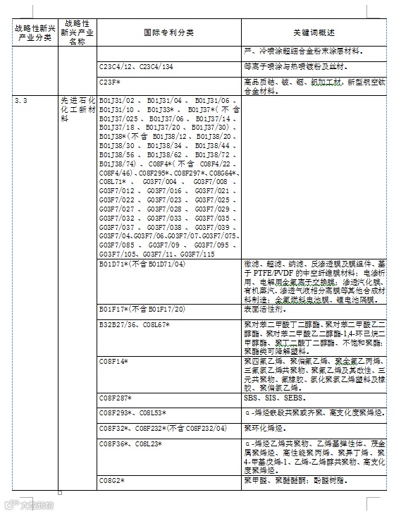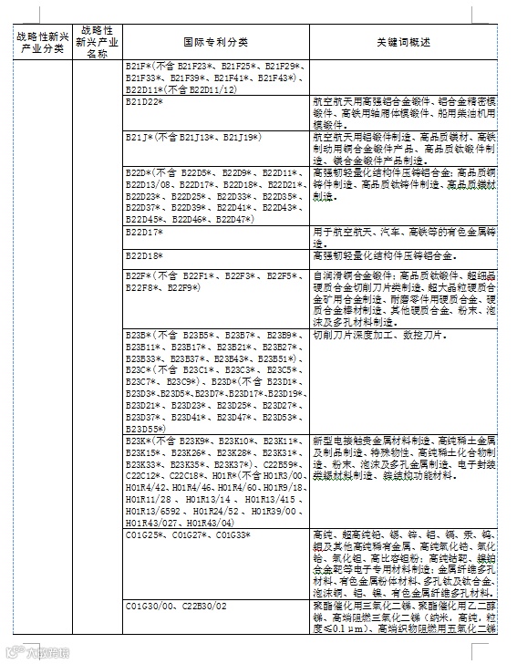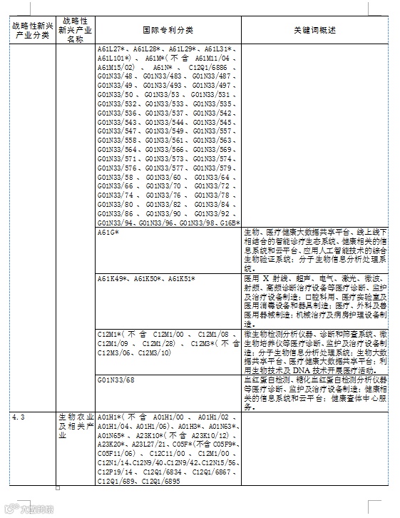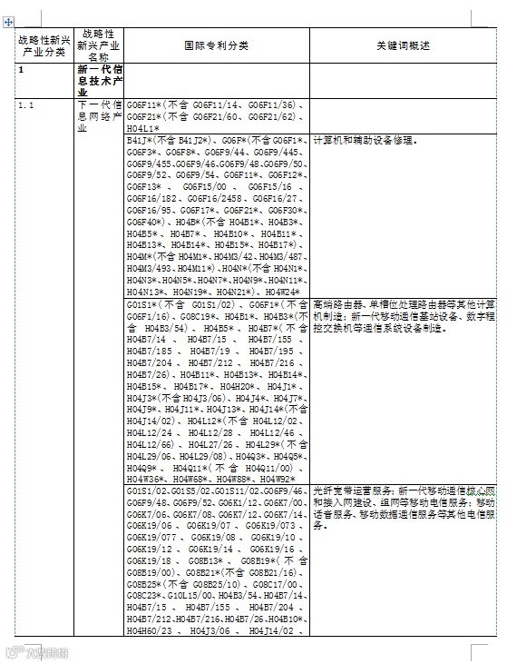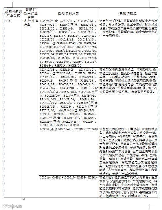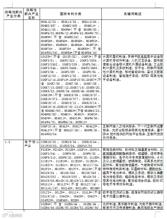 (三)确保产业全面覆盖。覆盖战略性新兴产业全部领域,实现与国际专利分类的全面对照关系。