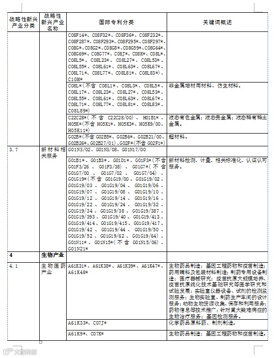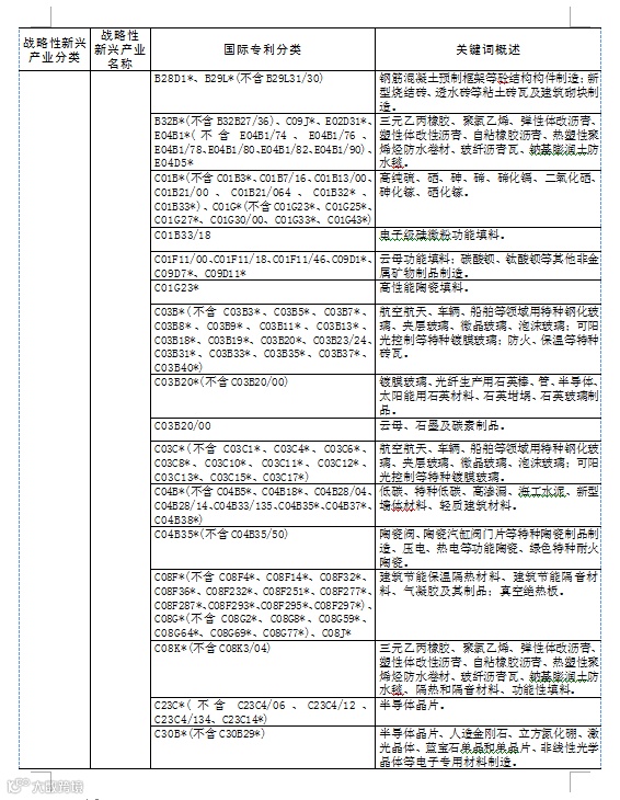 五、战略性新兴产业分类与国际专利分类参照关系表