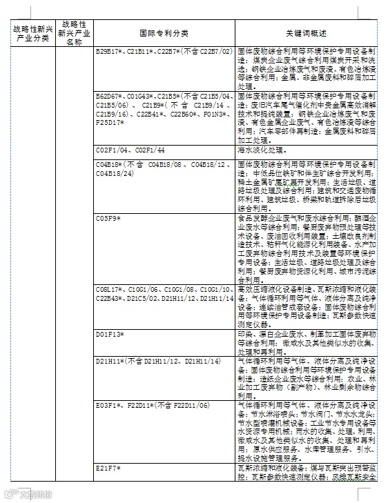 (一)战略性新兴产业均对应一个或多个国际专利分类,表示该国际专利分类下专利与所述战略性新兴产业相关;所述国际专利分类对应的关键词是对该分类的进一步限定,以实现更为准确的统计。