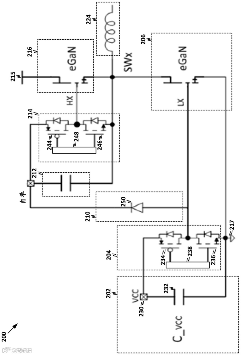 技术方案:本发明公开的实施例提供了用于开关氮化镓(GaN)器件的驱动器,包括高侧驱动器、低侧驱动器、以及高侧充电电路。高侧驱动器适于使用高侧电源来控制高侧GaN器件。低侧驱动器适于使用低侧电源来控制低侧GaN器件。高侧充电电路适于当低侧驱动器激活低侧GaN器件时,利用低侧电源来对高侧电源充电。