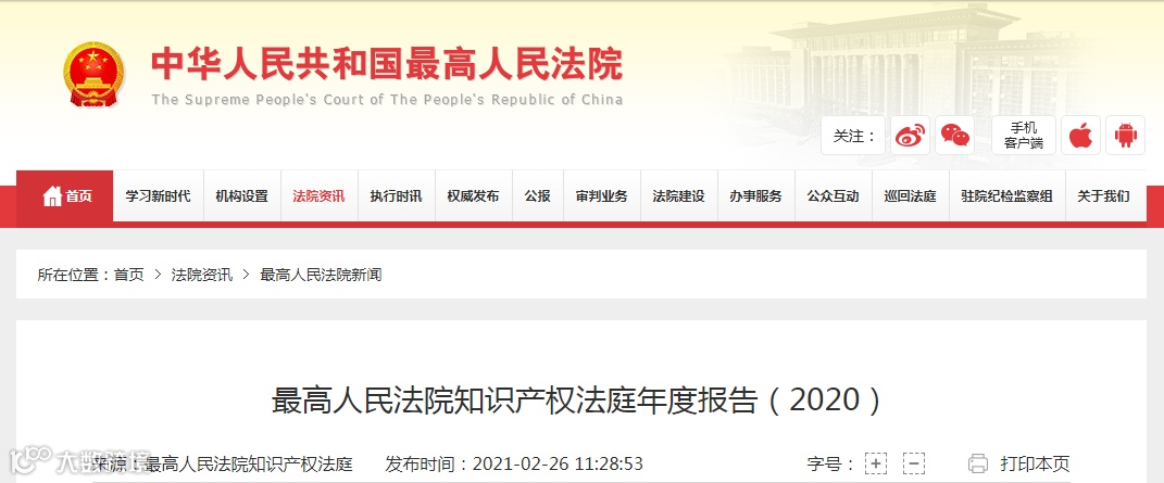 最高人民法院知识产权法庭年度报告(2020)