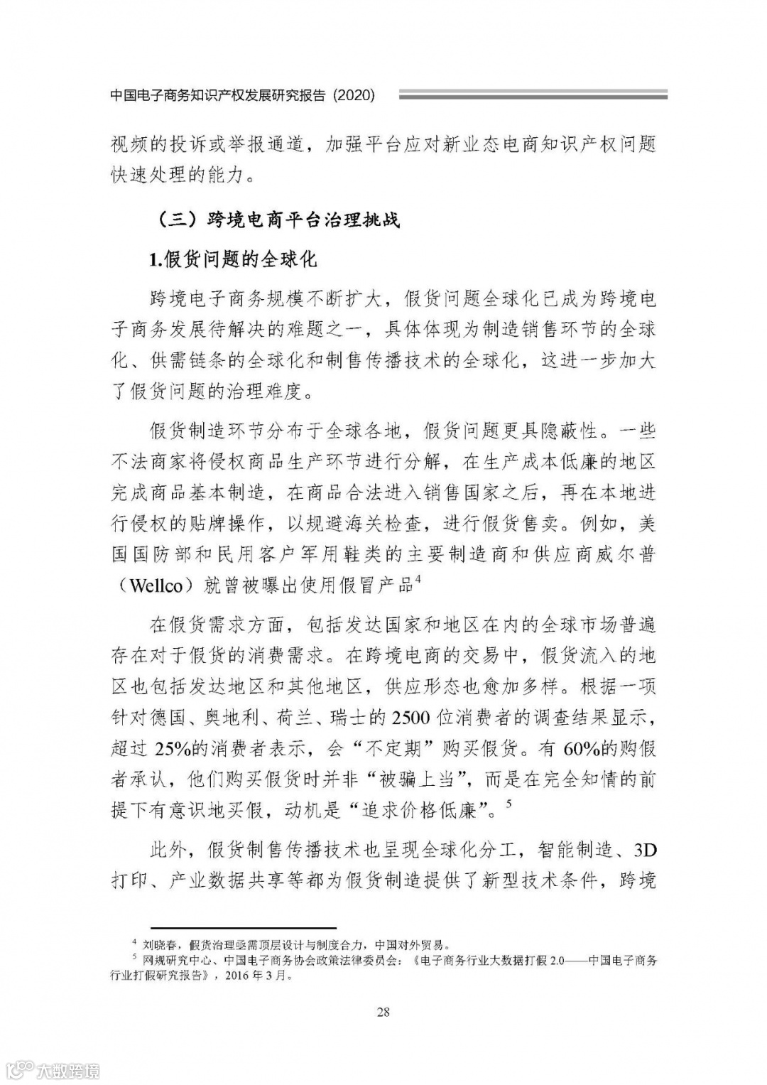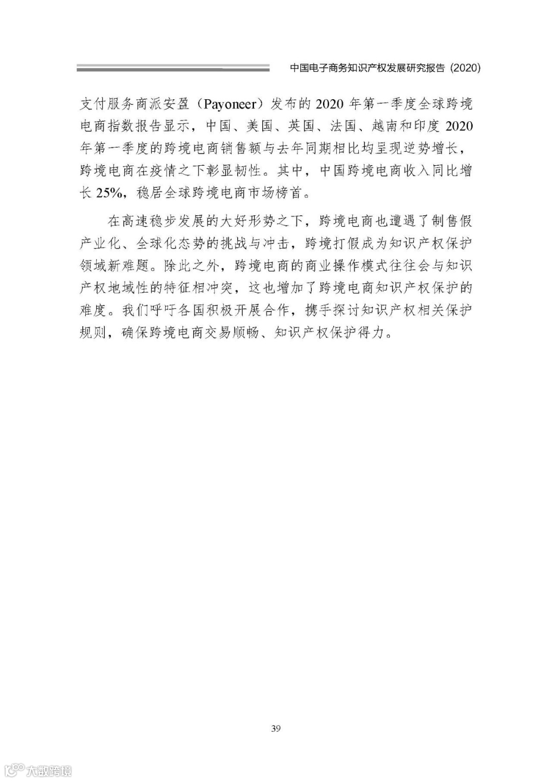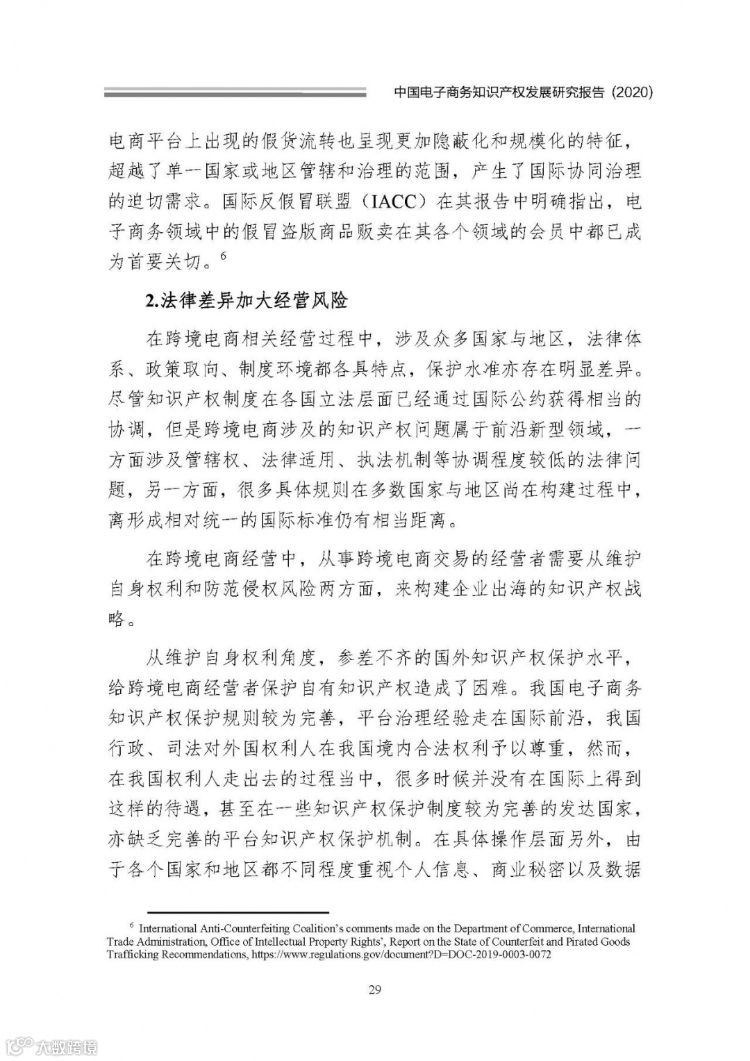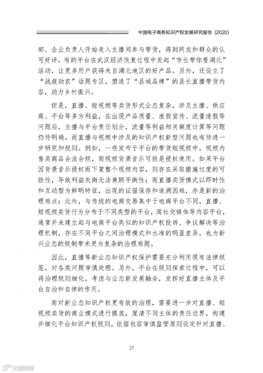 12月28日,研究中心召开《中国电子商务知识产权发展研究报告(2020)》发布会。报告全面展现2020年中电子商务知识产权的发展与探索。研究显示,2020年我国电子商务领域知识产权保护持续发力、全面强化、成效显著,为推动高质量发展提供有力保障。