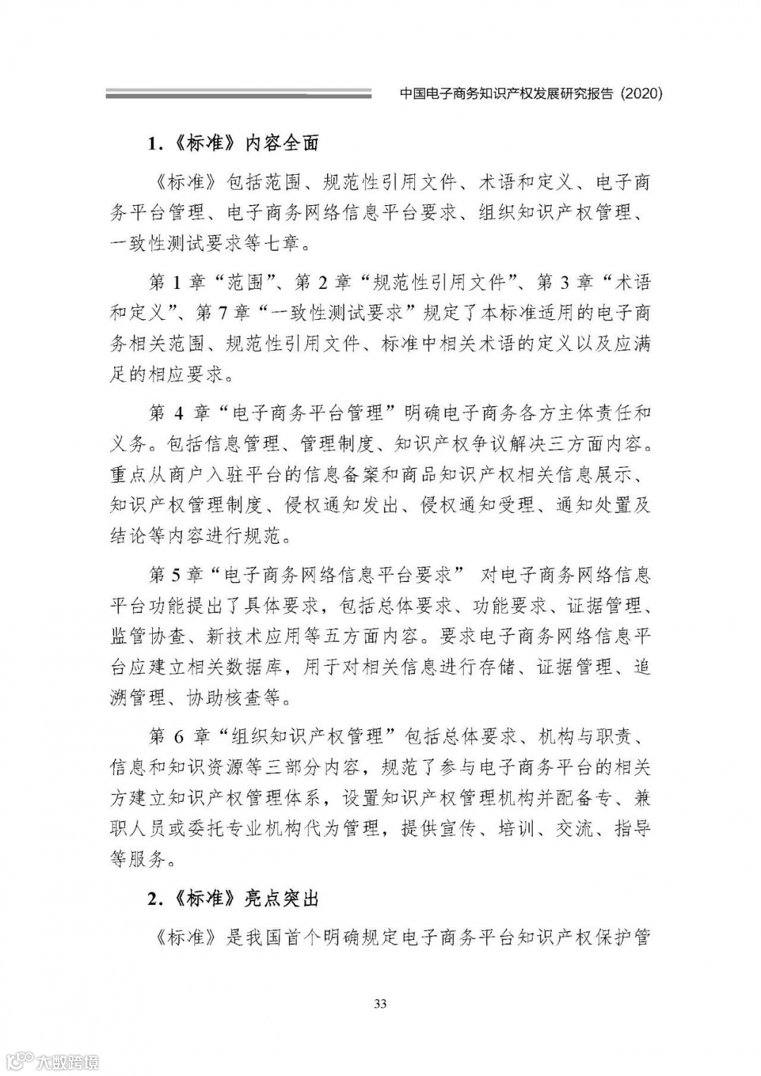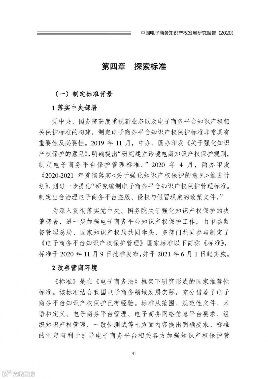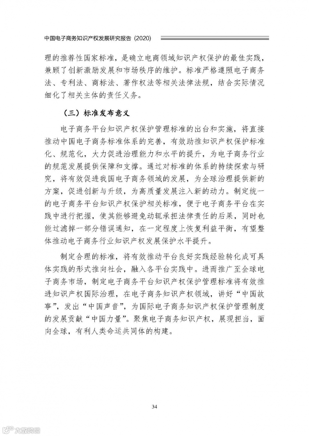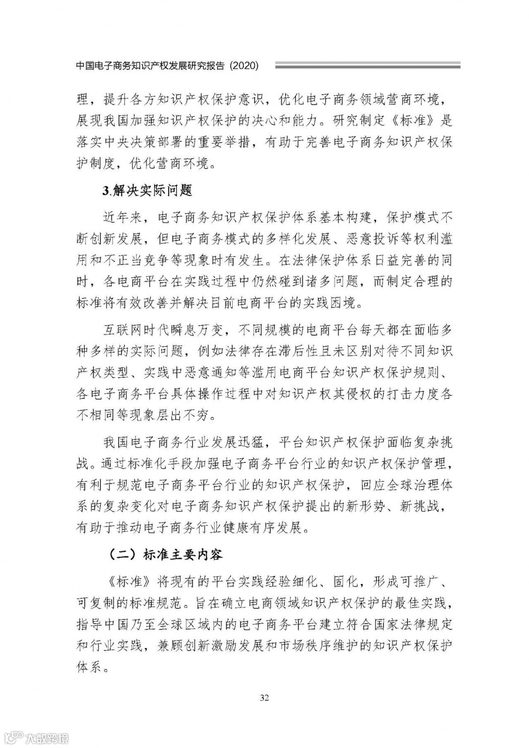 二是,制定行业标准。根据党中央、国务院的部署,将现有的平台实践经验细化、固化,形成可推广、可复制的标准规范。指导中国乃至全球区域内的电子商务平台建立符合国家法律规定和行业实践,兼顾创新激励发展和市场秩序维护的知识产权保护体系。构建有“中国智慧”的知识产权保护行业标准。