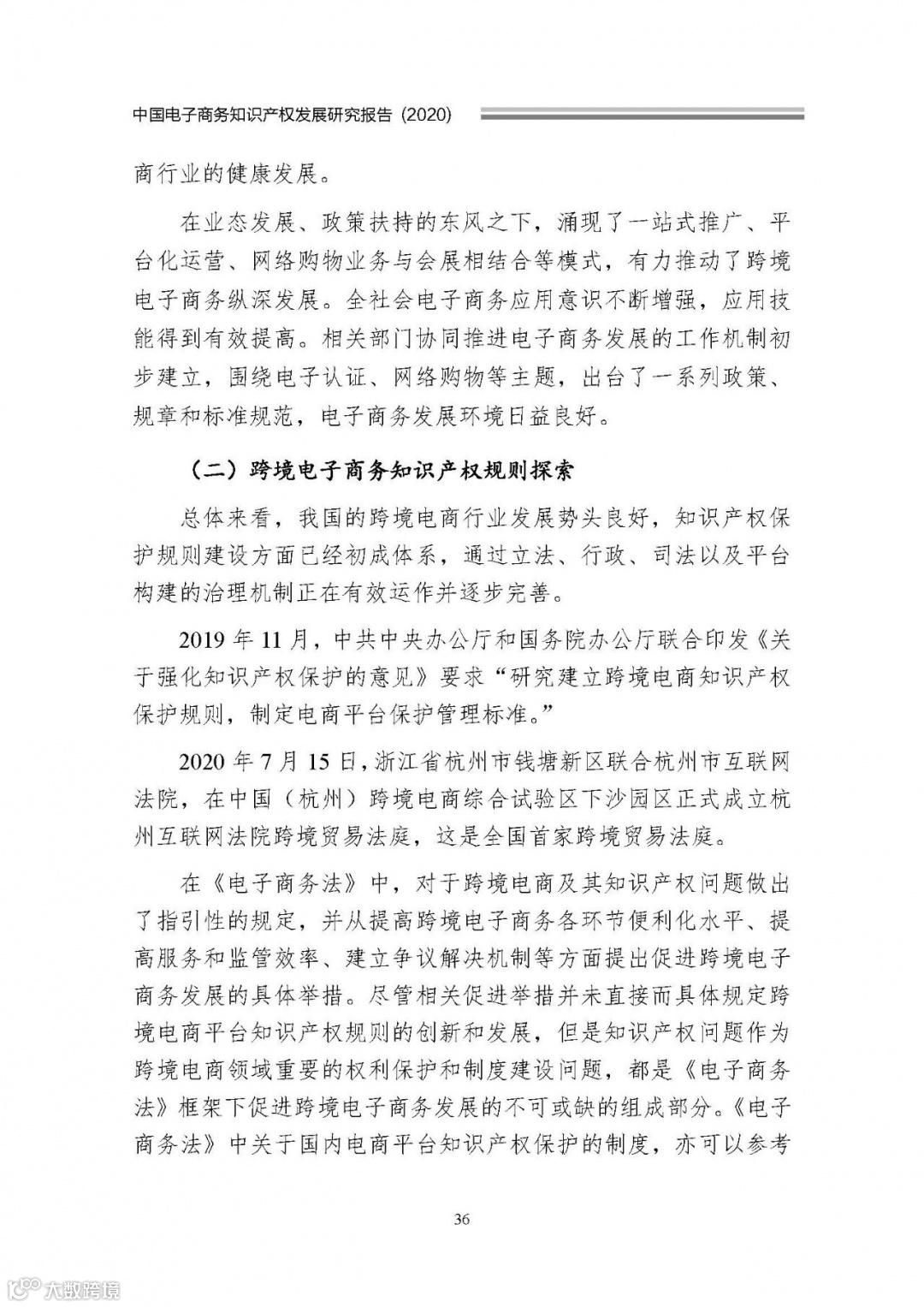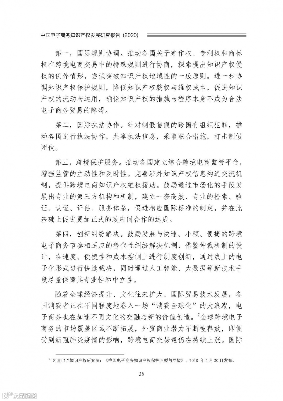 一是,创新解决争议。将平台争议解决机制适用于电商知识产权争议具有成本低、灵活性强等多重优势。创新知识产权纠纷争议解决机制,鼓励发展与快速、小额、便捷的跨境电子商务节奏相适应的替代性纠纷解决机制,通过线上的电子化形式进行快速裁决,同时通过人工智能、大数据等新技术手段保障其专业性和中立性。