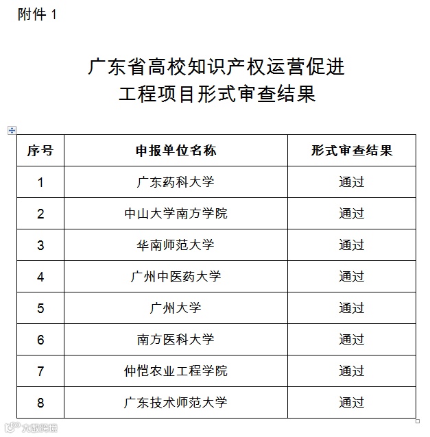 附件:1.广东省高校知识产权运营促进工程项目形式审查结果.docx