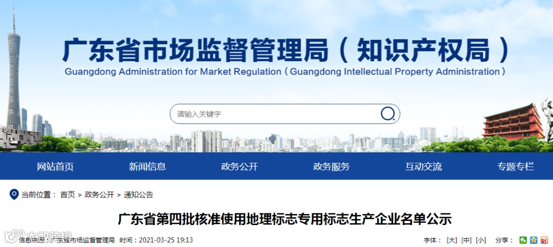根据《地理标志产品保护规定》《地理标志专用标志使用管理办法(试行)》《国家知识产权局办公室关于确定首批地理标志产品专用标志使用核准改革试点地方的通知》,广东省知识产权管理部门组织对生产白蕉海鲈、南雄板鸭、蕉岭绿茶、新会陈皮、新会柑、封开杏花鸡、麦溪鲤、麦溪鲩、东陂腊味、英德红茶、阳山淮山、凤凰单丛(枞)茶、东坝蚕茧等13个产品的51家企业申请使用地理标志专用标志进行审核,初步核准使用地理标志专用标志,现将名单予以公示(见附件)。公示期为7天(2021年3月25日至2021年3月31日)。