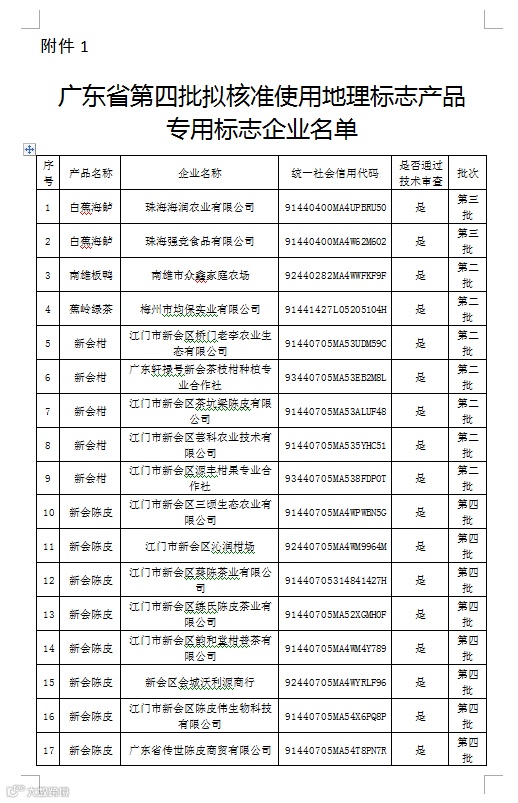 附件:广东省第四批拟核准使用地理标志产品专用标志企业名单.docx