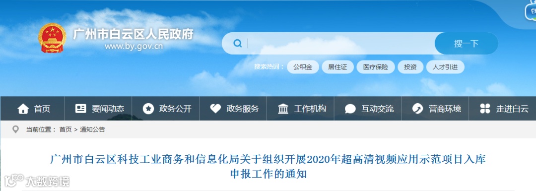 附件:广州市工业和信息化局 广州市教育局 广州市民政局 广州市商务局 广州市卫生健康委转发关于组织开展2020年超高清视频应用示范项目入库申报工作的通知.pdf