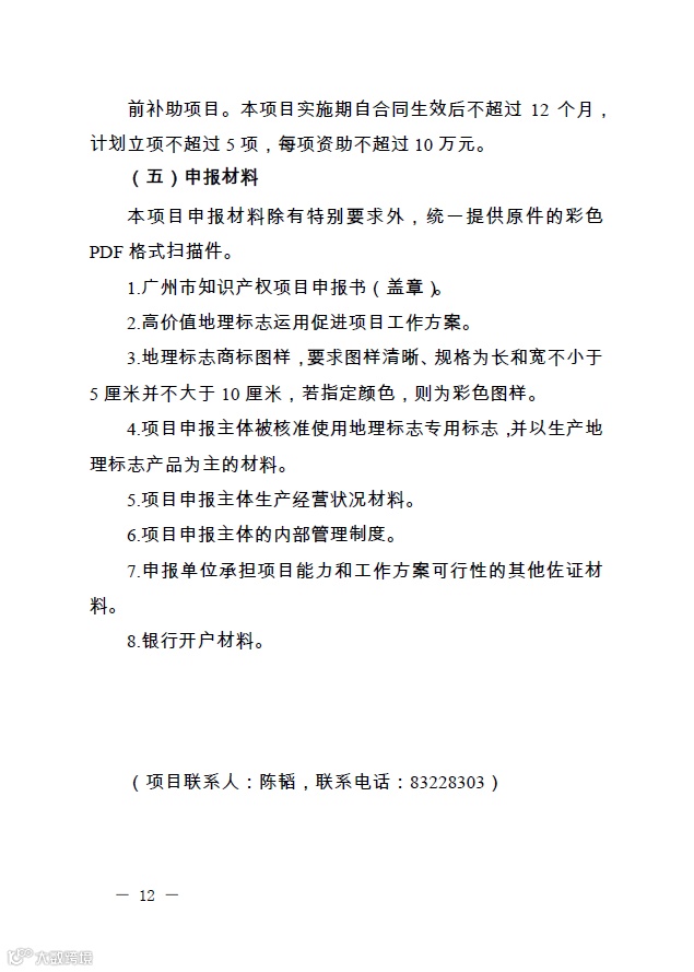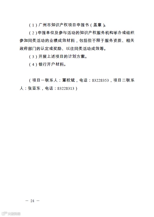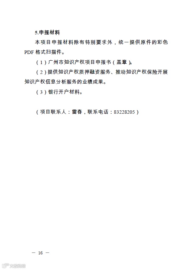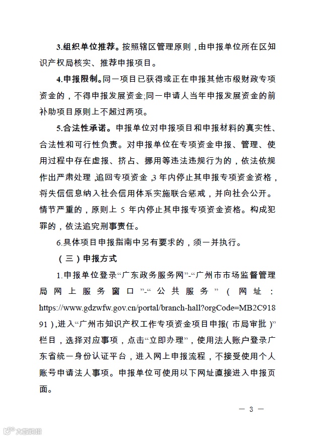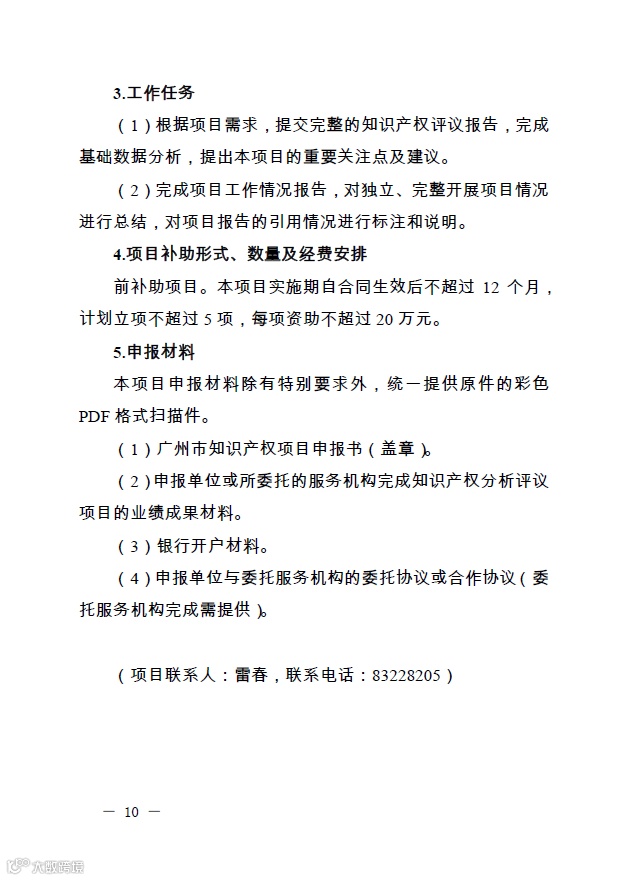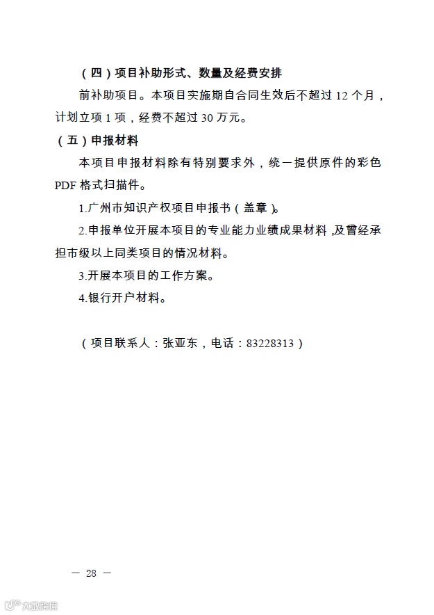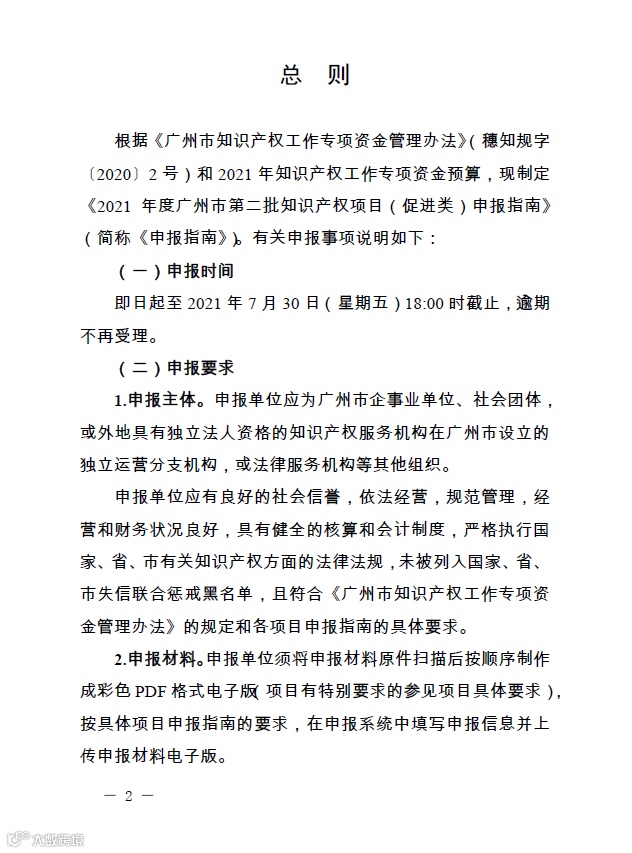 为做好2021年度广州市知识产权项目申报工作,充分发挥财政资金的激励、引导作用,根据《广州市知识产权工作专项资金管理办法》(穗知规字〔2020〕2号)有关要求,我局制定了2021年度第二批广州市知识产权项目(促进类)申报指南和项目申报书。现印发给你们,请结合本单位工作需要,积极开展项目申报工作。