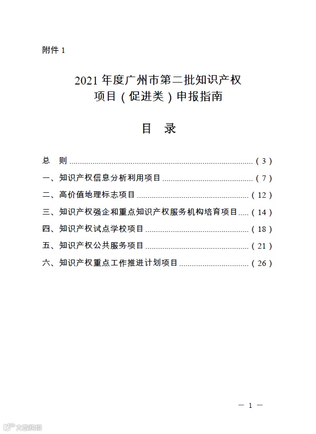 附件:1.2021年度广州市第二批知识产权项目(促进类)申报指南.docx
