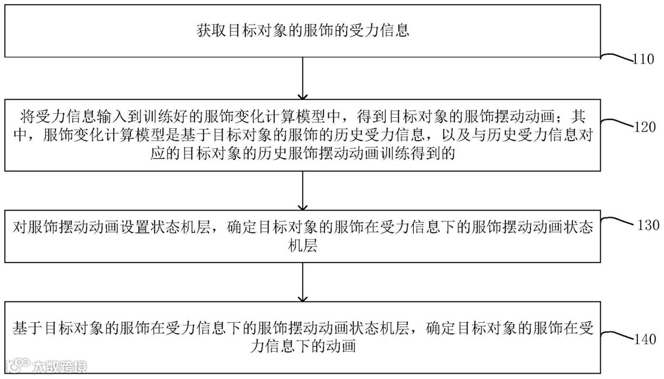 摘要:本发明公开了一种服饰变化方法、装置、电子设备和存储介质。该方法包括:获取目标对象的服饰的受力信息;将所述受力信息输入到训练好的服饰变化计算模型中,得到所述目标对象的服饰摆动动画;其中,所述服饰变化计算模型是基于目标对象的服饰的历史受力信息,以及与所述历史受力信息对应的目标对象的历史服饰摆动动画训练得到的;对所述服饰摆动动画设置状态机层,确定所述目标对象的服饰在所述受力信息下的服饰摆动动画状态机层;基于所述目标对象的服饰在所述受力信息下的服饰摆动动画状态机层,确定所述目标对象的服饰在所述受力信息下的动画。以实现通过离线方式实现服饰随腿部动作变化而变化的效果。
