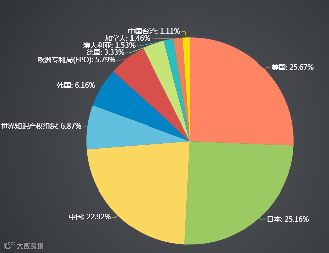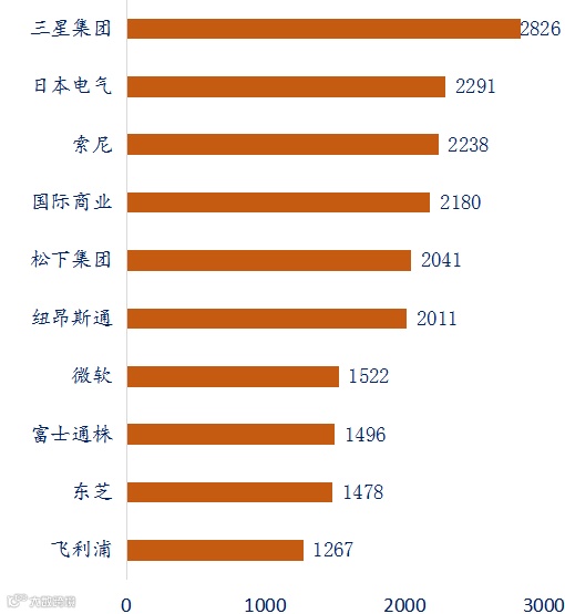 从全球申请人排行榜中,可以发现榜单的申请人,主要是电子科技领域企业。申请人主要来自在美国和日本,其中日本申请人居多,占有5个席位,分别是日本电气、索尼、松下集团、富士通株和东芝。排名在前三按照排名由高到低依次是三星集团、日本电气和索尼,专利拥有量依次是2826件、2291件和2238件。