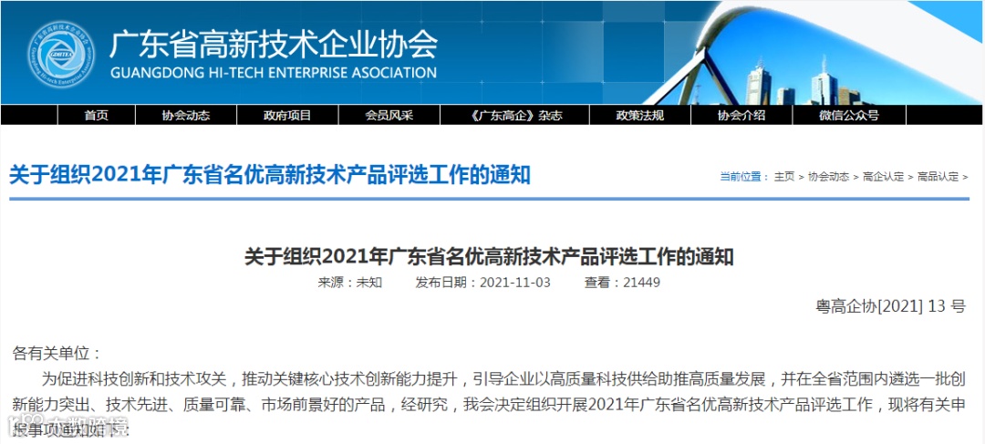 关于组织2021年广东省名优高新技术产品评选工作的通知.pdf