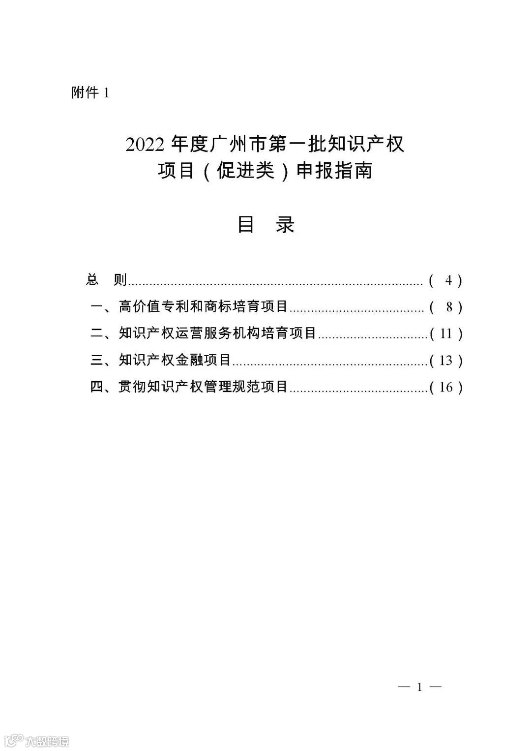 附件:1.2022年度广州市第一批知识产权项目(促进类)申报指南.docx