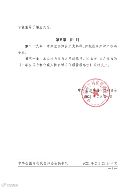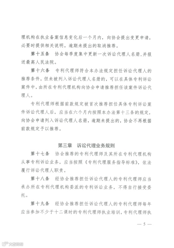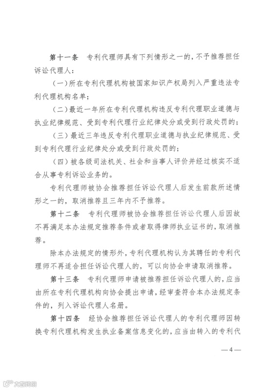 为了规范专利代理师在专利诉讼中的执业行为,加强对专利代理机构和专利代理师从事专利诉讼业务的监督管理,发挥专利代理机构和专利代理师在社会主义法治和创新型国家战略中的作用,维护专利法律正确实施,维护专利诉讼当事人的合法权益,提高专利诉讼质量和效率,实现公平正义,根据《中华人民共和国民事诉讼法》、《中华人民共和国行政诉讼法》、《专利代理条例》和《专利代理管理办法》,制定本方法。
