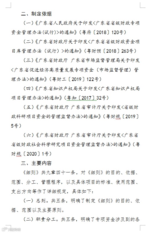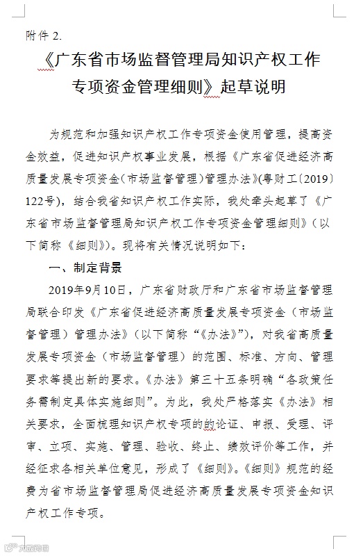 2.《广东省市场监督管理局知识产权工作专项资金管理细则》起草说明