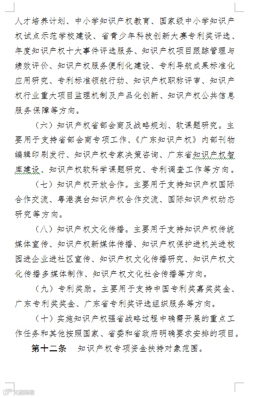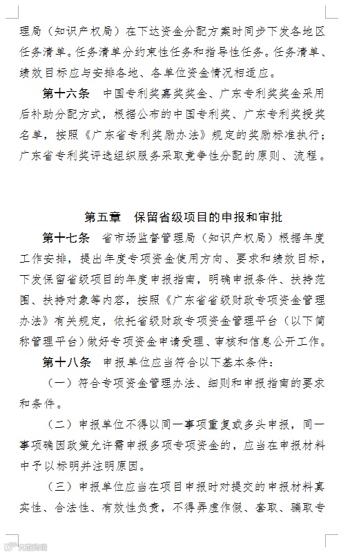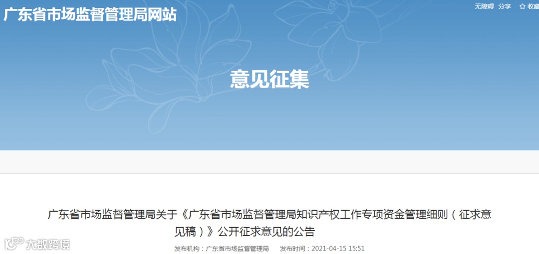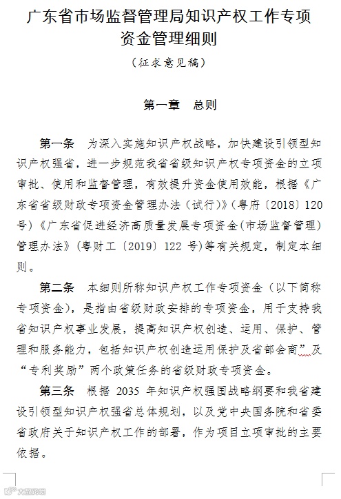 1.《广东省市场监督管理局知识产权工作专项资金管理细则(征求意见稿)》