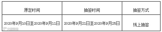 2020年9月21日至9月25日每日下午14:00-15:00。抽签人按照抽签日期安排进行抽签。