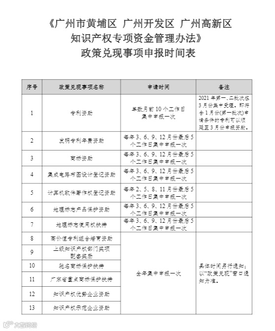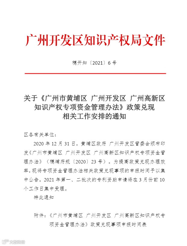 导读:关于《广州市黄埔区广州开发区广州高新区知识产权专项资金管理办法》政策兑现相关工作安排的通知