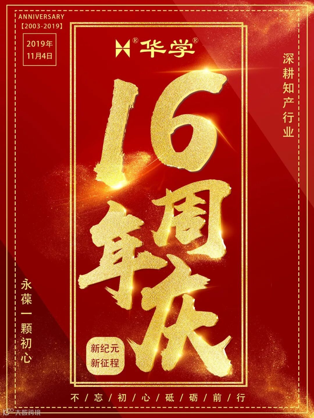 热烈祝贺广州市华学知识产权代理有限公司成立十六周年 华学知识产权