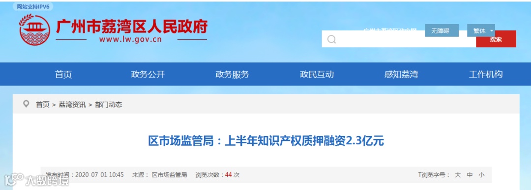 今年上半年,荔湾区知识产权质押融资登记备案金额达2.3亿元人民币,是2019年全年1450万元质押金额的近16倍。