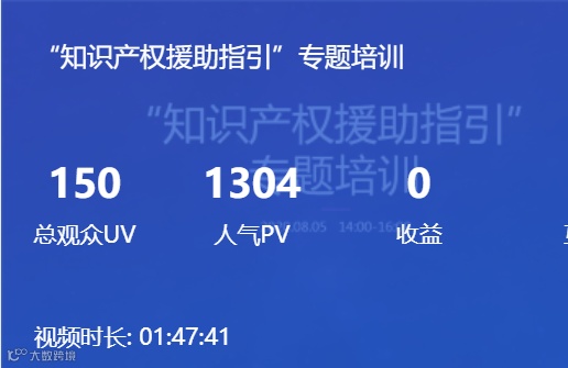 本次培训采取线上直播方式,面向广州市企事业单位等创新主体、个人展开培训,线上直播中来自企事业单位、高校、科研机构的知识产权从业人员、发明人、设计人等人员共150人参加,直播超1300人气。
