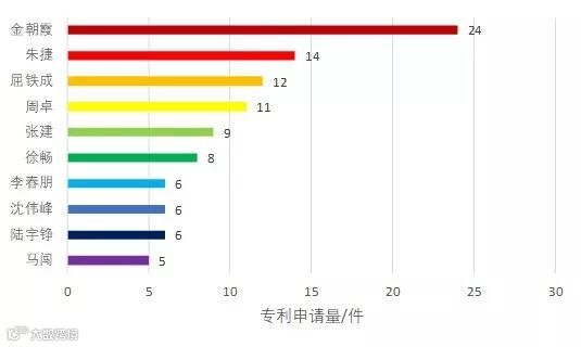 图8 霍尼韦尔在中国呼吸防护产业的专利申请发明人排名