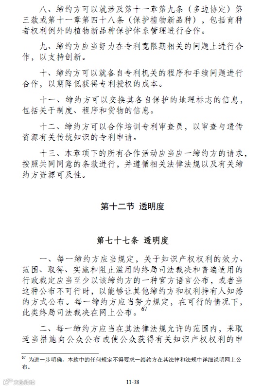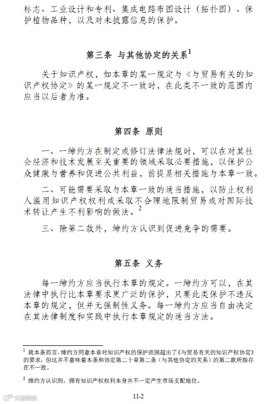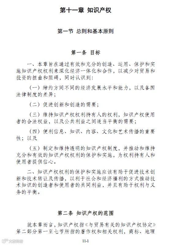 昨日官方发布了《区域全面经济伙伴关系协定》(RCEP)协定文本的中英文版。其中协定中第11章内容为知识产权相关内容,协定对权利的授予、保护的例外、审查注册事项、民事刑事救济等等内容都进行了相关的约定。今日小编就协定的第十一章(知识产权部分)为大家做了梳理,详细内容如下: