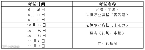 近日,人力资源社会保障部办公厅印发了《关于2021年度专业技术人员职业资格考试工作计划及有关事项的通知》,其中知识产权相关考试时间如下: