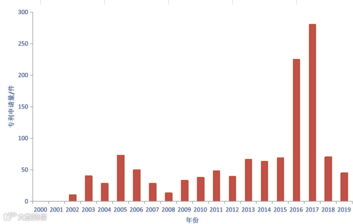 数据来源:incopat数据库,注:2018年和2019年有部分专利数据未公开 |