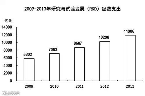 2009-2013年研究与试验发展(R&D)经费支出图。 (中国人民共和国国家统计局/图)