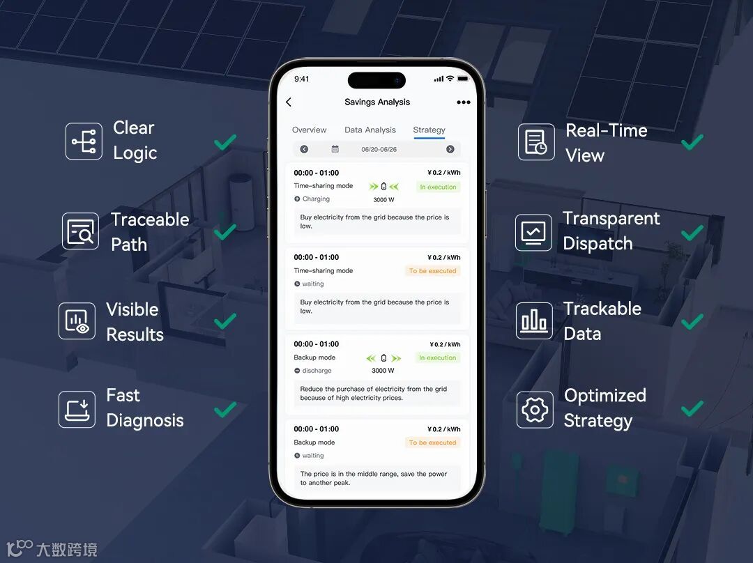 作为 elekeeper 的智能中枢,AI Saving 2.0 融合强大 AI 算法,集成发电、储能、用电与电价策略,具备高精度预测与秒级响应能力,实时提供最优用电方案。系统构建完整的能源价值闭环,实现全流程可视化管理,帮助用户从“用电花钱”逐步转变为“用电增值”,走向高效可持续的能源新时代。