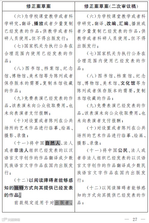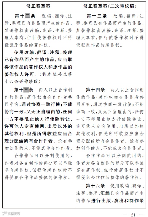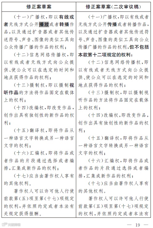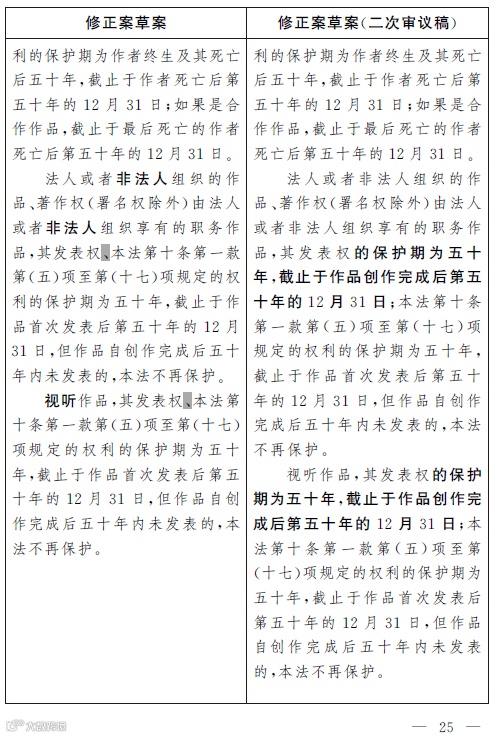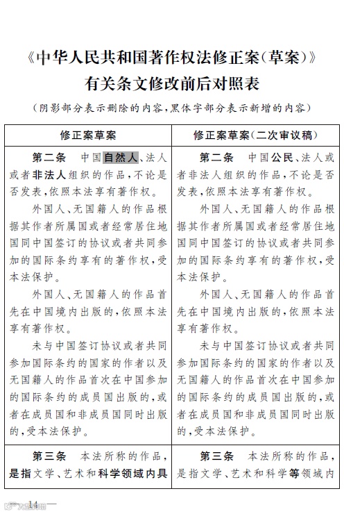 2020年8月8日,第十三届全国人大常委会第二十一次会议对《中华人民共和国著作权法修正案(草案二次审议稿)》进行了审议。现将《中华人民共和国著作权法修正案(草案二次审议稿)》在中国人大网公布,社会公众可以直接登录中国人大网(www.npc.gov.cn)提出意见,也可以将意见寄送全国人大常委会法制工作委员会(北京市西城区前门西大街1号,邮编:100805。信封上请注明著作权法修正案草案二次审议稿征求意见)。